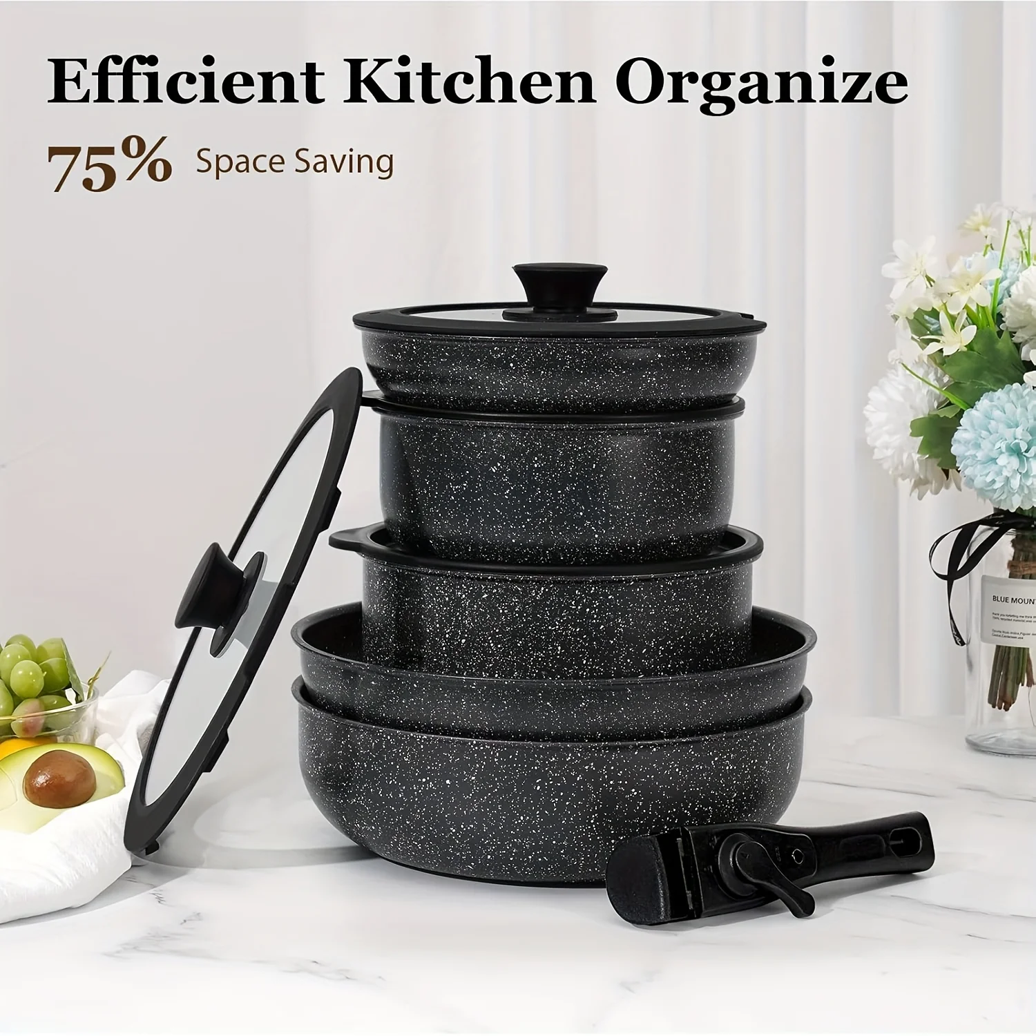 15-piece pot and pan set with non-stick coating, cookware sets with removable handles, non-stick campervan kitchen cookware set with removable handles,