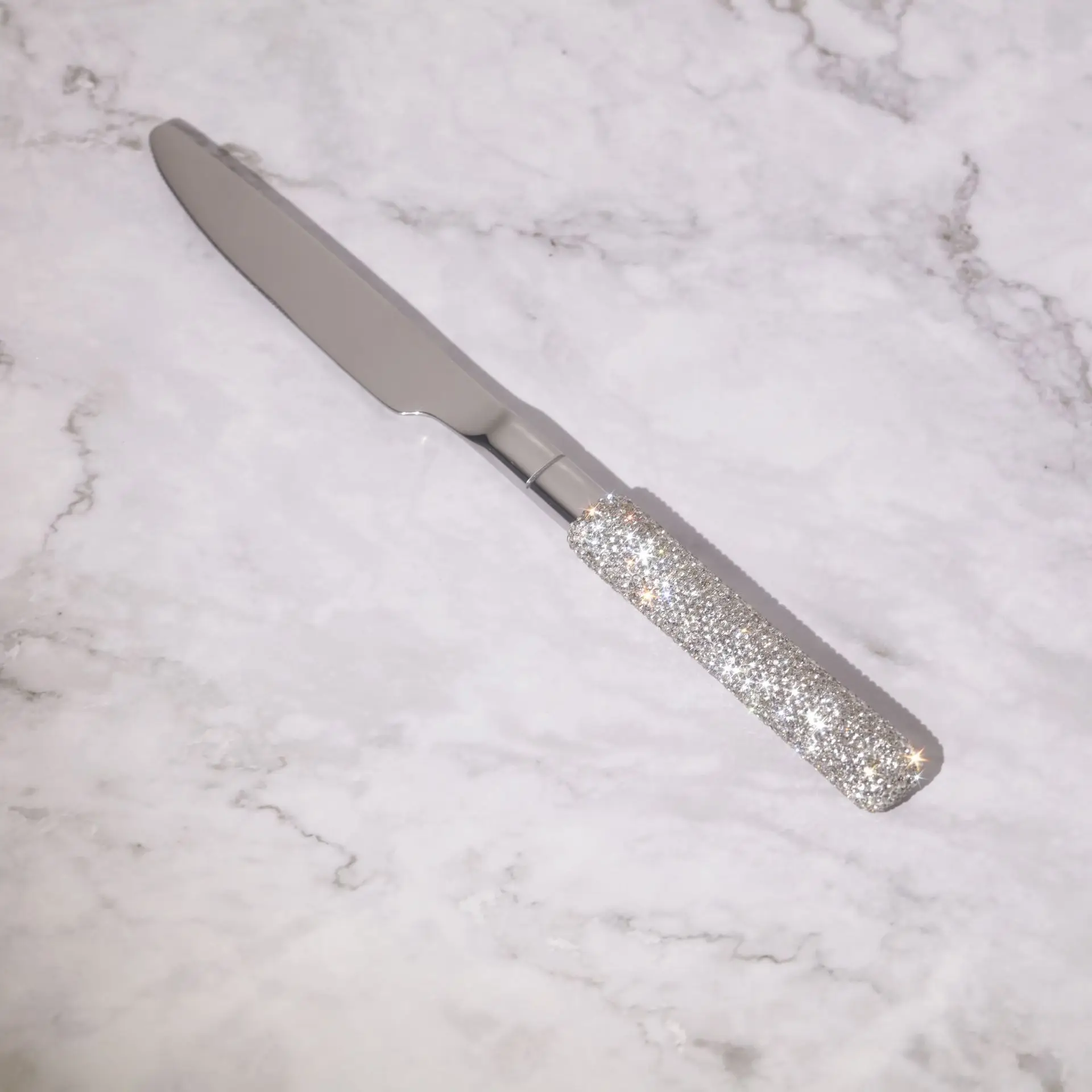 Spoon, fork, and knife set with sparkling diamond, 304 stainless steel, cutlery, tableware, home, kitchen, wedding accessories, luxury