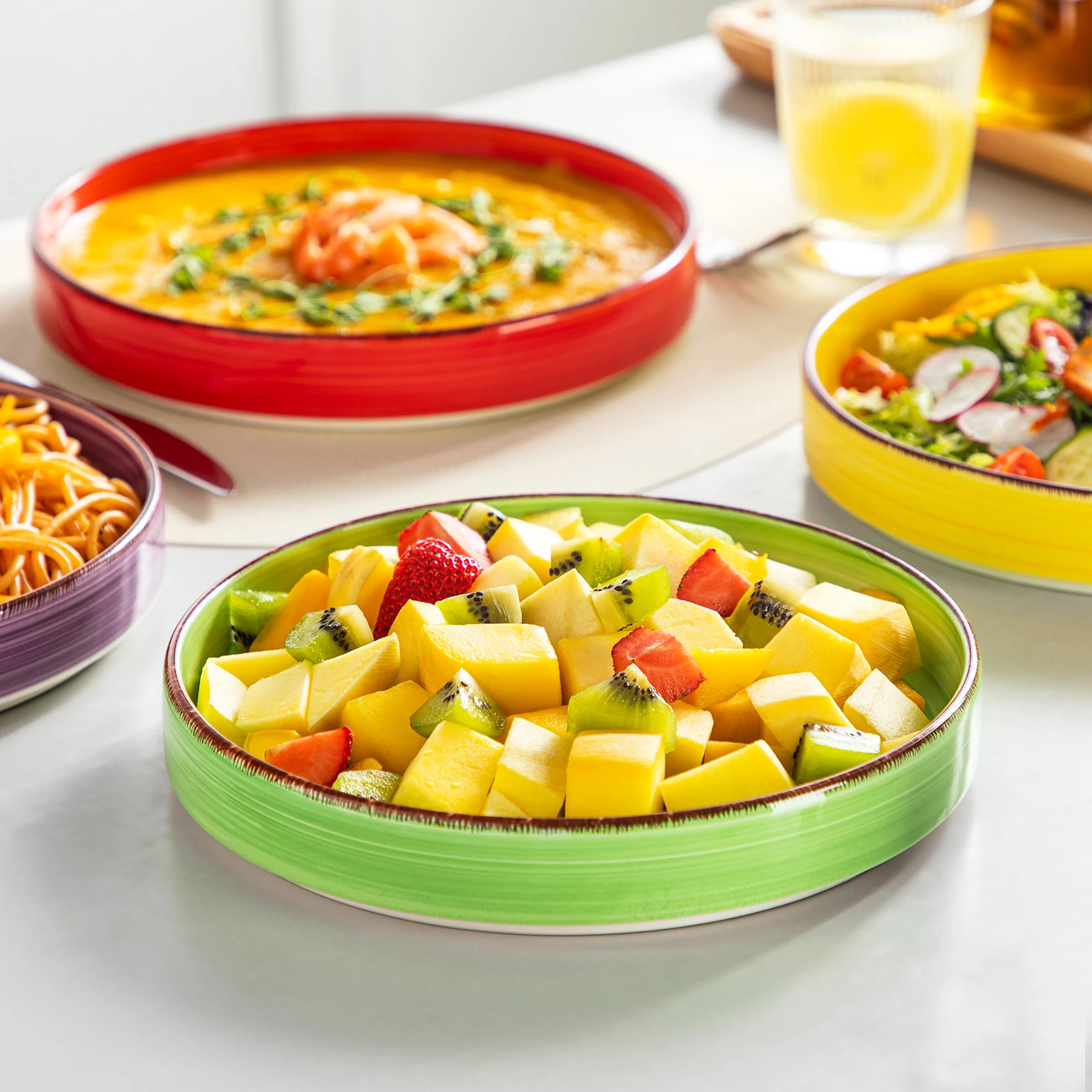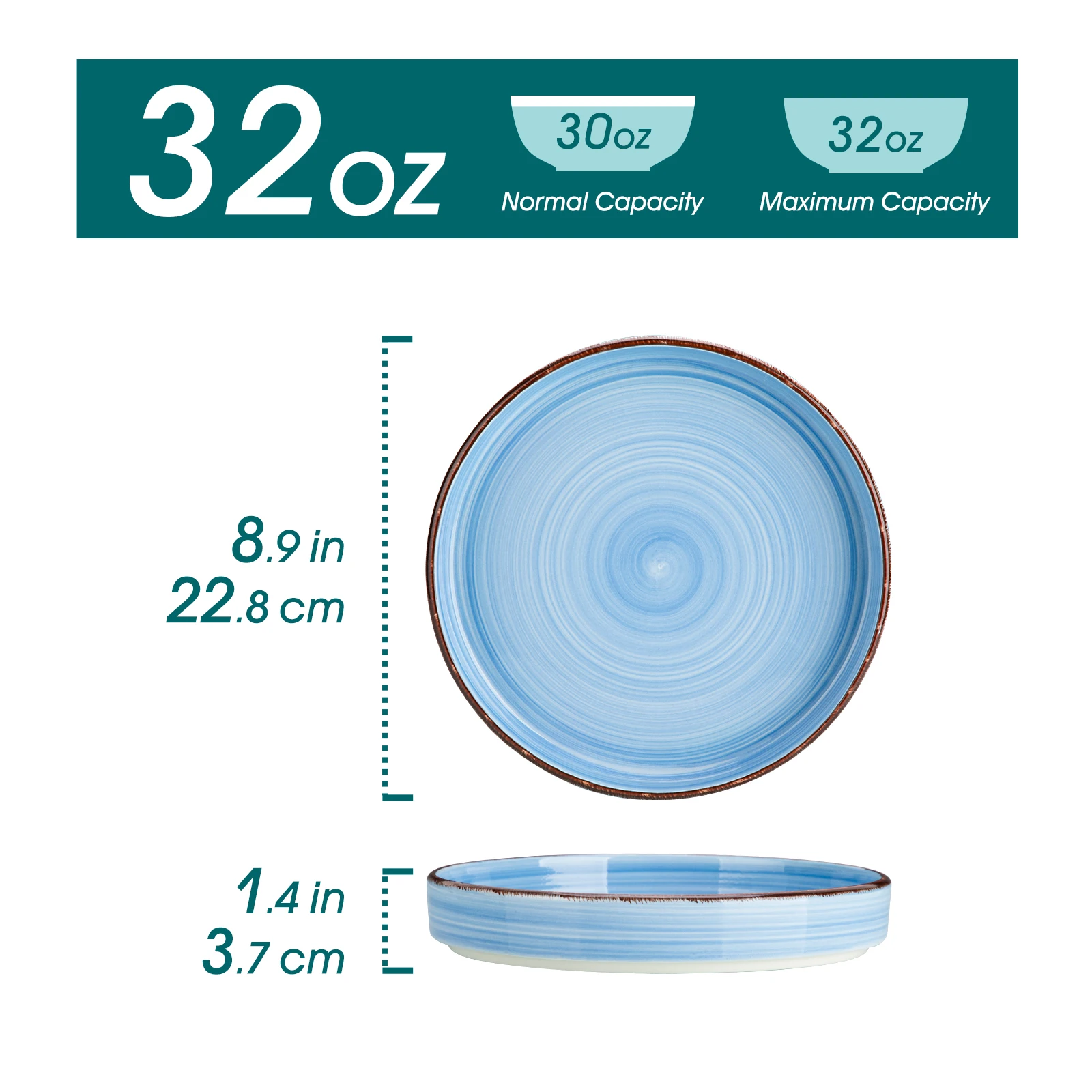 ► Ideal kitchen plate set - Pasta plates - 32oz, regular size. Perfect for desserts, snacks, salads, pasta, noodles, tiramisu, fruit tarts, cheesecakes, etc. It can also be used as a smaller plate size for dieters. They are also very lightweight compared to porcelain plates.