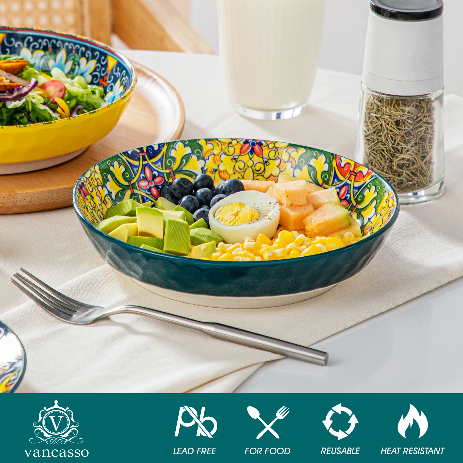 Vancasso Porzellan Nudelteller 6/12-teilig Böhmisch 950ml – Suppenteller für Salat, Pasta Geschirrsets Europa CE-zertifiziert Premium Qualitaet Kostenloser Versand