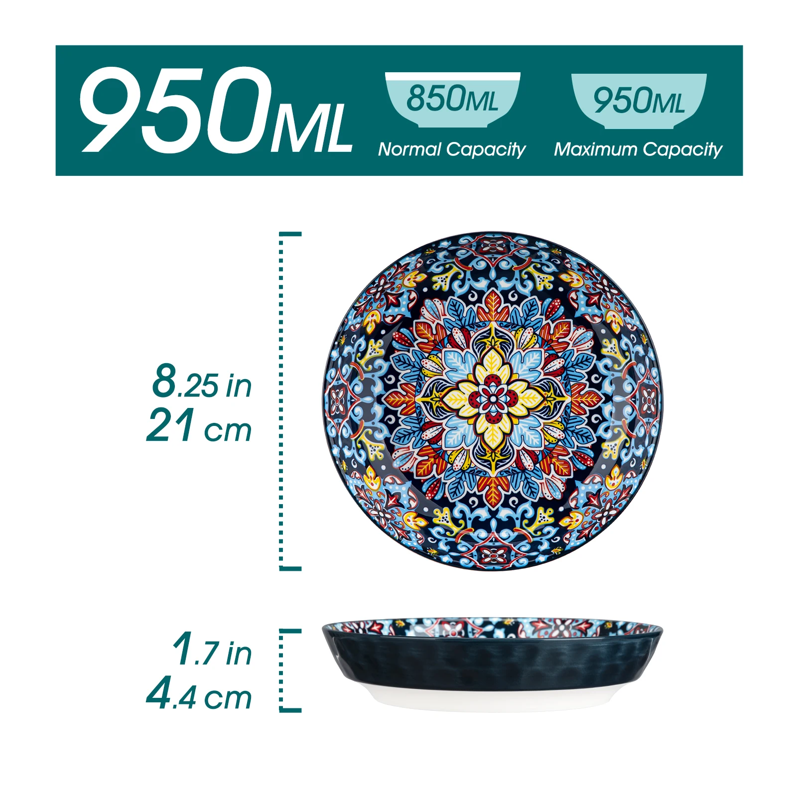 Vancasso 6/12 Piece 32oz Porcelain Noodle Plates Bohemian 950ml Large Soup Plate Set for Salad/Food/Noodles/Pasta 6 People
