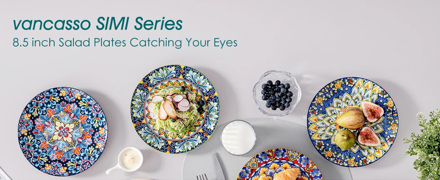 【Vivid and colorful designs】: Vancasso-style Bohemian dessert plates feature charming and intricate designs that capture the free-spirited essence of Bohemian culture.