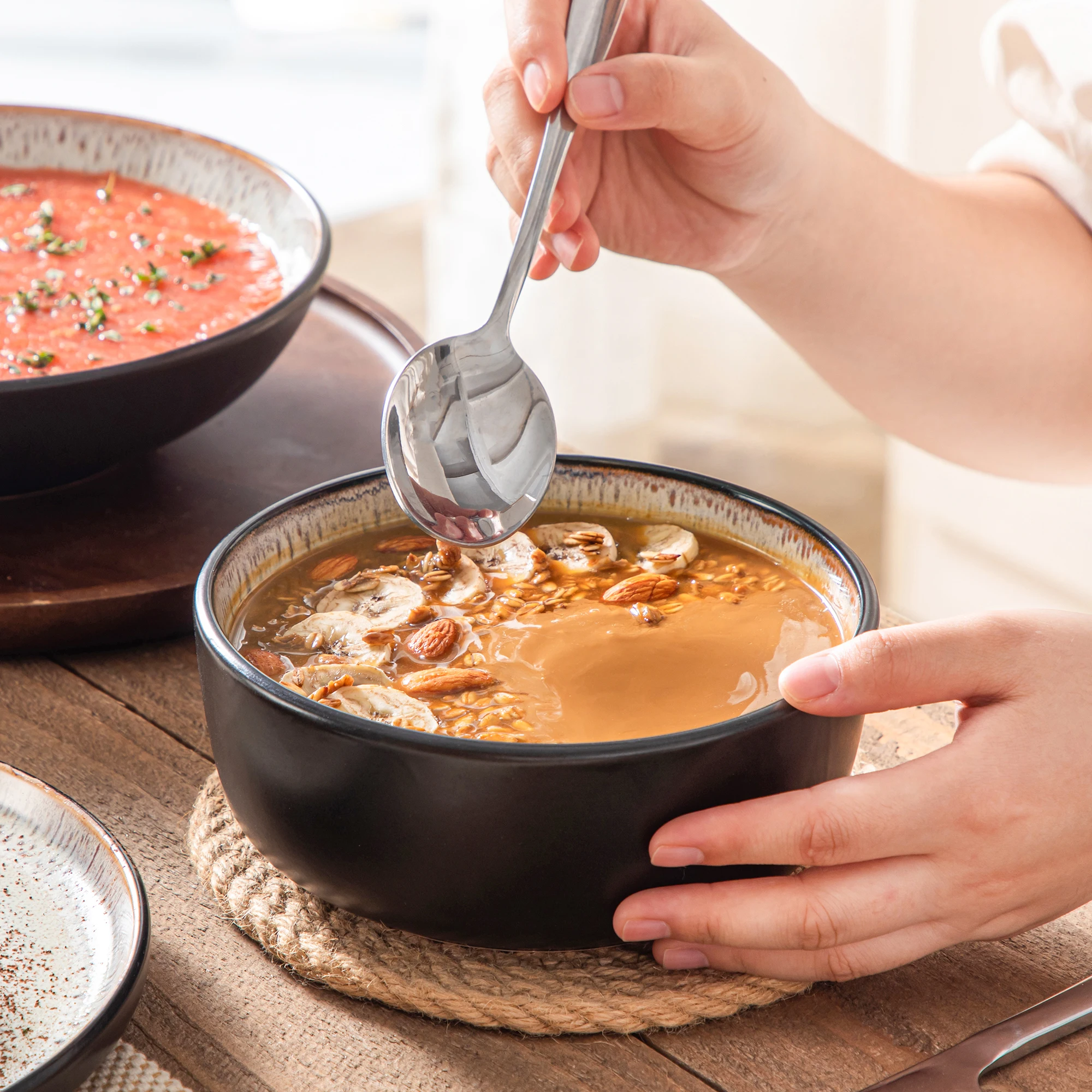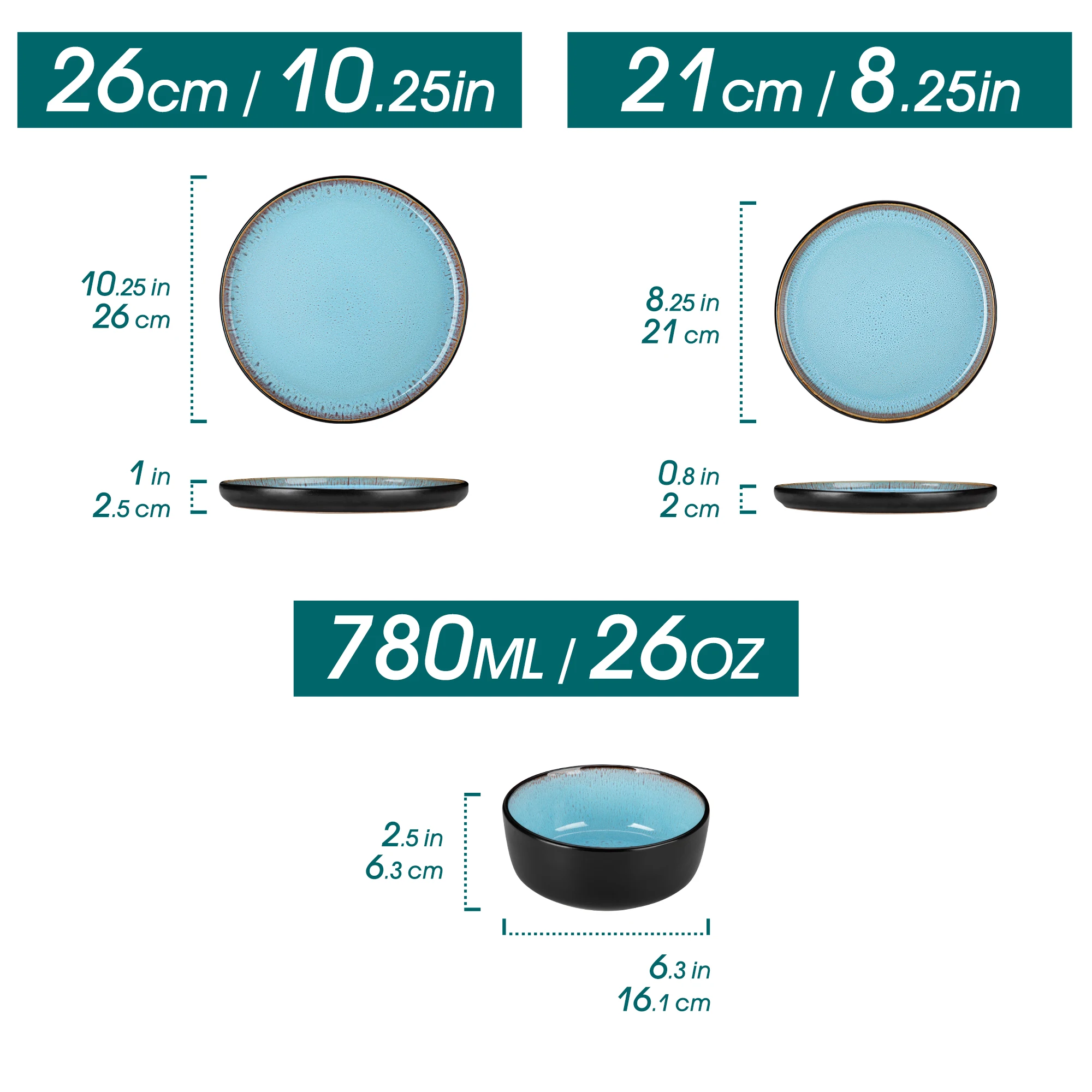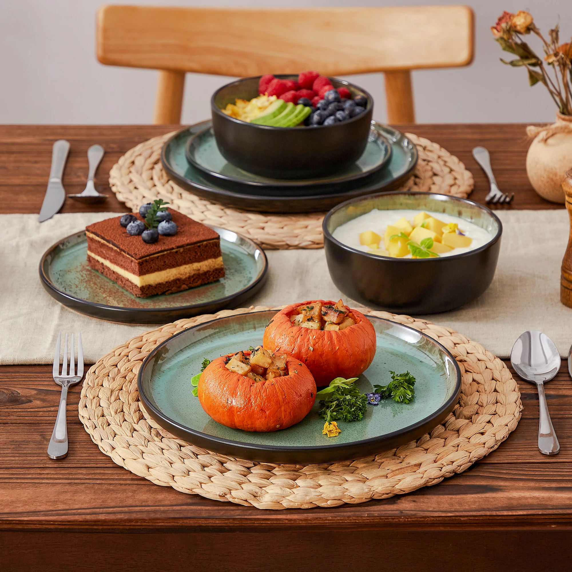 vancasso AMBER 12/16-piece ceramic dinnerware set, matte black stoneware plate set with 4/6 dinner plates/dessert/bowl/soup