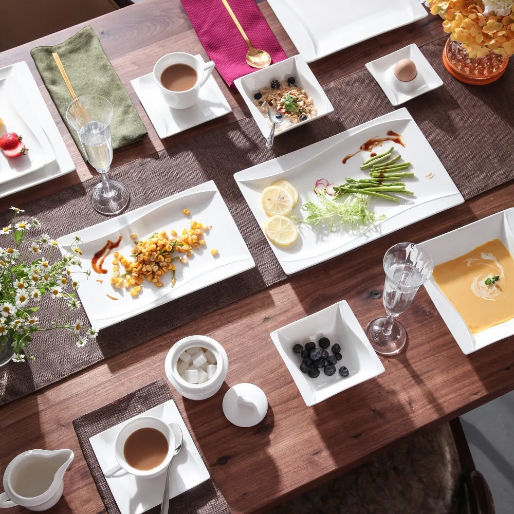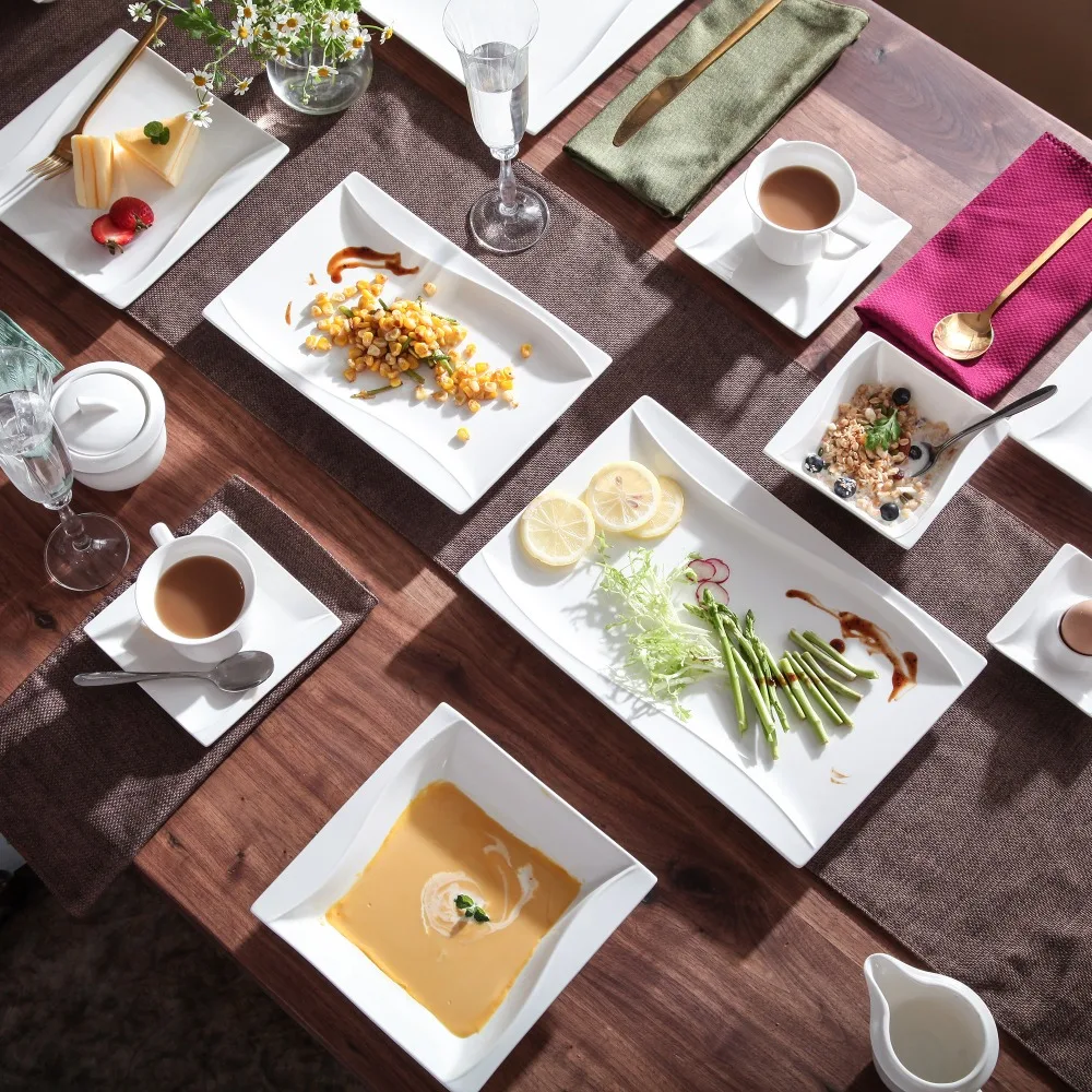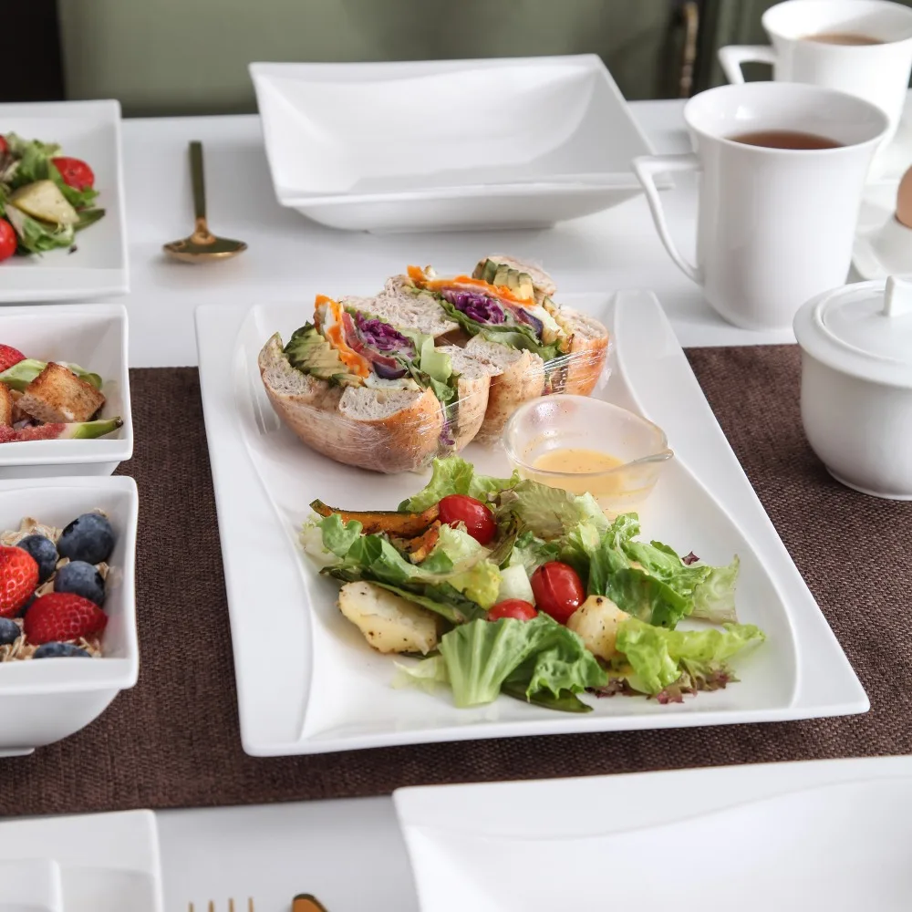 Porzellan MALACASA Carina 2-teiliges elfenbein weißes Porzellan Teller Set Teller Obst Snack Gerichte mit 11 "& 13.25" rechteckigen Teller Geschirrsets Europa CE-zertifiziert Premium Qualitaet Kostenloser Versand