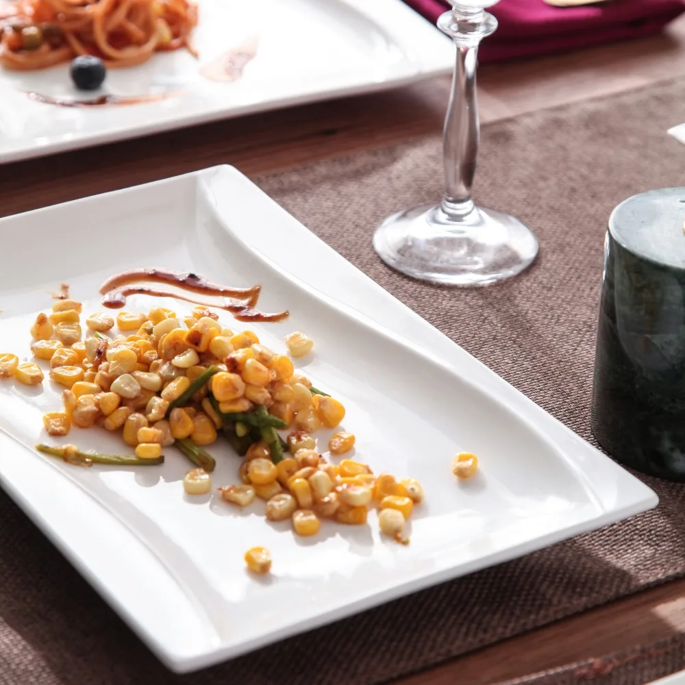 Porzellan MALACASA Carina 2-teiliges elfenbein weißes Porzellan Teller Set Teller Obst Snack Gerichte mit 11 "& 13.25" rechteckigen Teller