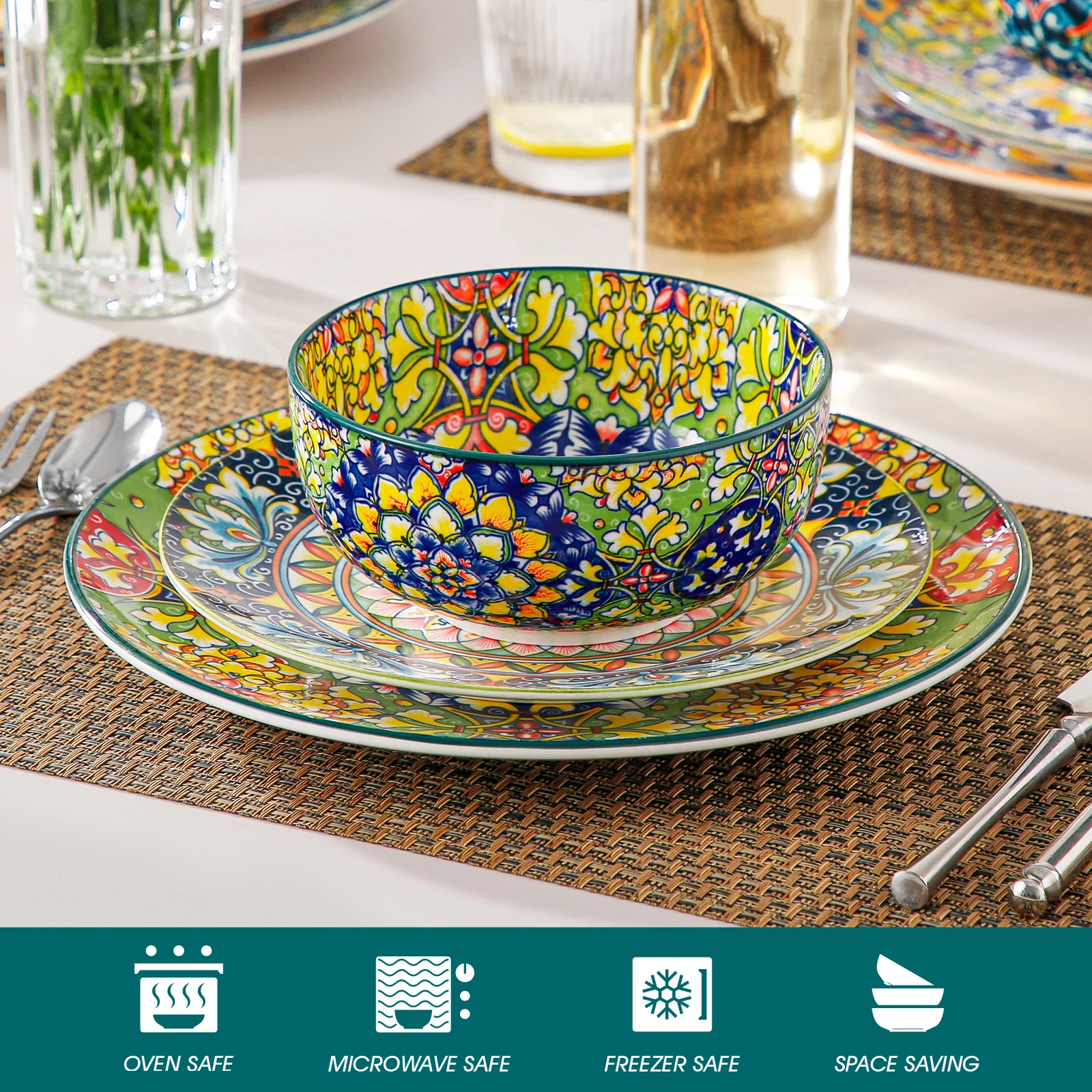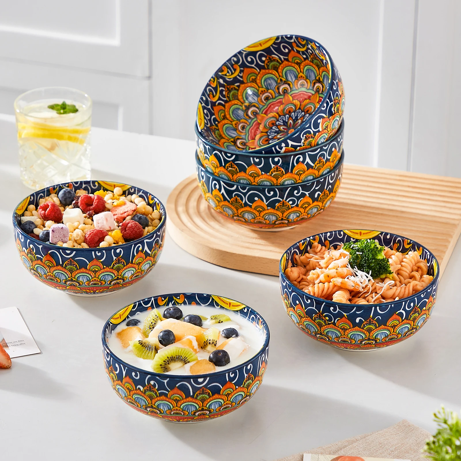 【Lebendige und farbenfrohe Designs】 Das Schüsselset im Bohemian-Stil von Vancasso verfügt sowohl auf der Innenseite als auch auf der Außenseite über ein böhmisches Musterdesign und fängt die freie Geisteressenz der böhmischen Kultur ein.Die leuchtenden Farben und künstlerischen Muster wecken ein Gefühl von Freude und Positivität und machen Ihr kulinarisches Erlebnis voller Vitalität und Glück.