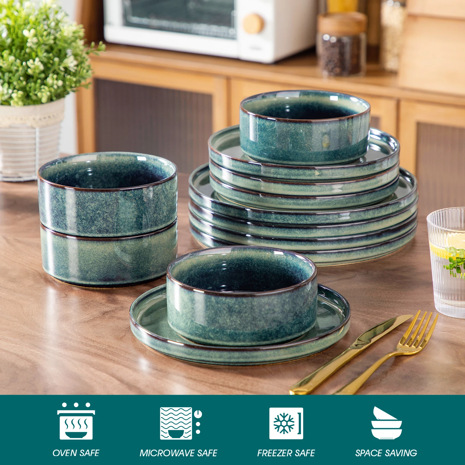 ПОЛНЫЙ НАБОР ИЗ 12 ПРЕДМЕТОВ – Этот набор посуды из керамики, состоящий из 12 предметов, рассчитан на 4 персоны и включает в себя 4 миски для еды объемом 720 мл, обеденные столы диаметром 10,5 дюймов и десертные тарелки диаметром 8,5 дюймов.