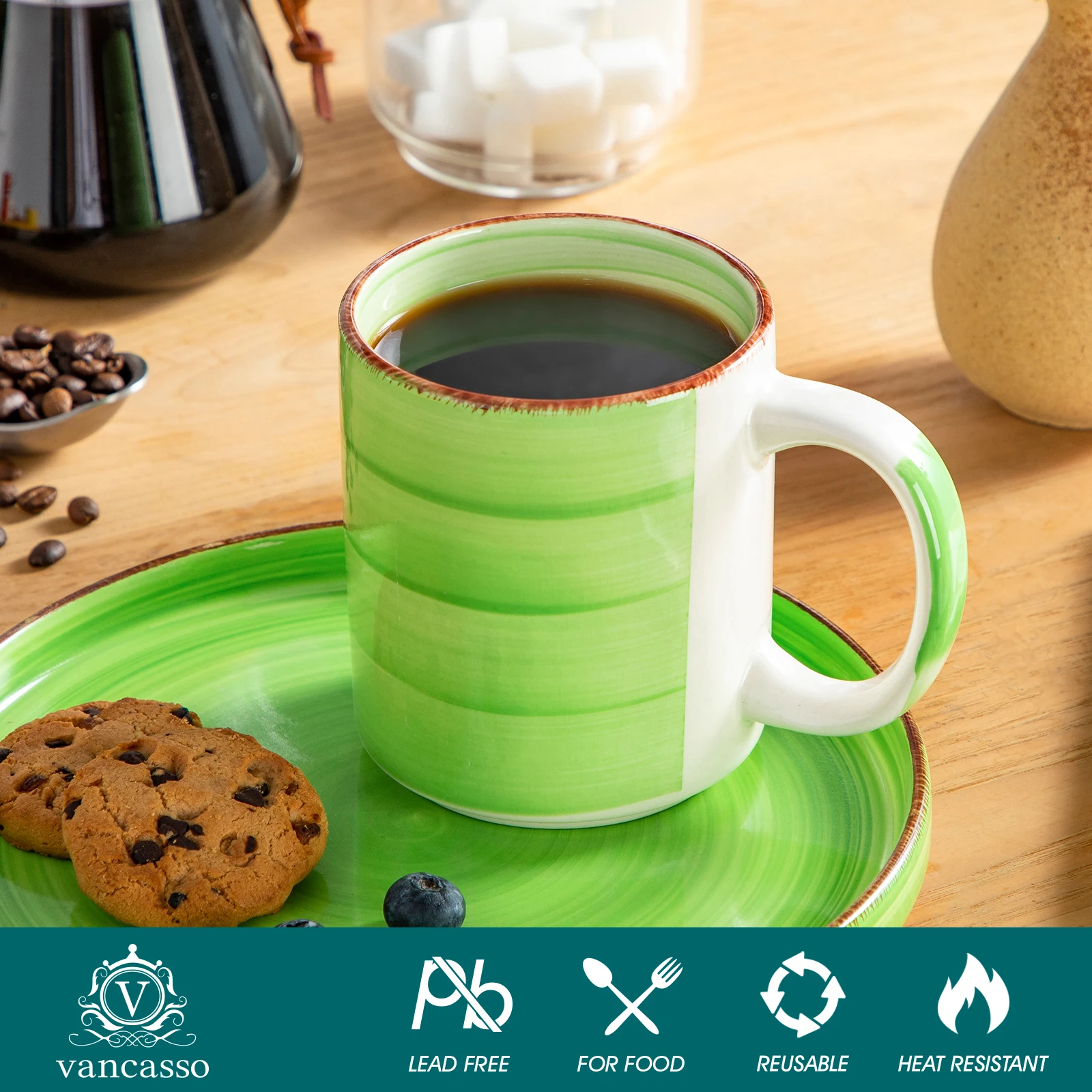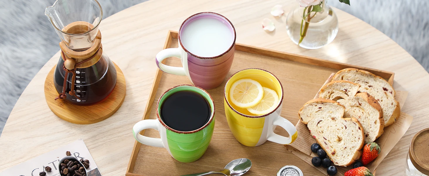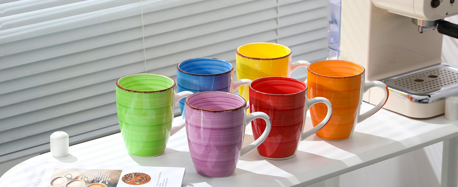 Чашки с ручками обеспечивают удобный захват при ходьбе. Это красивые, толстые чашки ярких, насыщенных цветов с большими ручками, благодаря чему их очень легко держать, и они достаточно прочные. Коническая форма идеально подходит для любого любителя кофе или ценителя напитков.